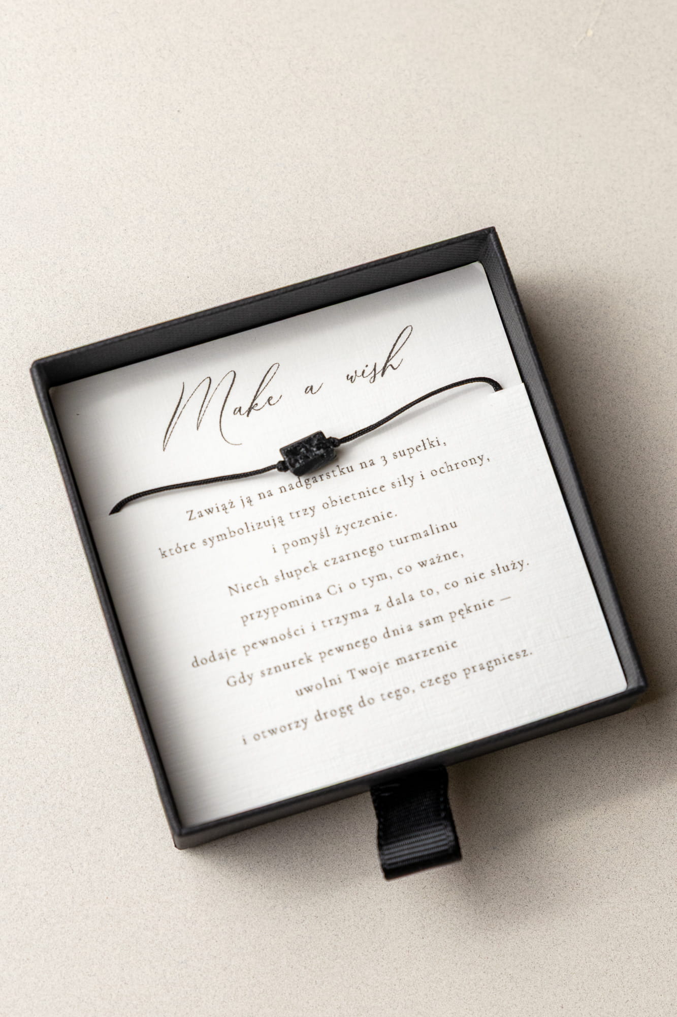 Niech słupek czarnego turmalinu przypomina Ci o tym, co ważne, dodaje pewności i trzyma z dala to, co nie służy. Gdy sznurek pewnego dnia sam pęknie — uwolni Twoje marzenie i otworzy drogę do tego, czego pragniesz.