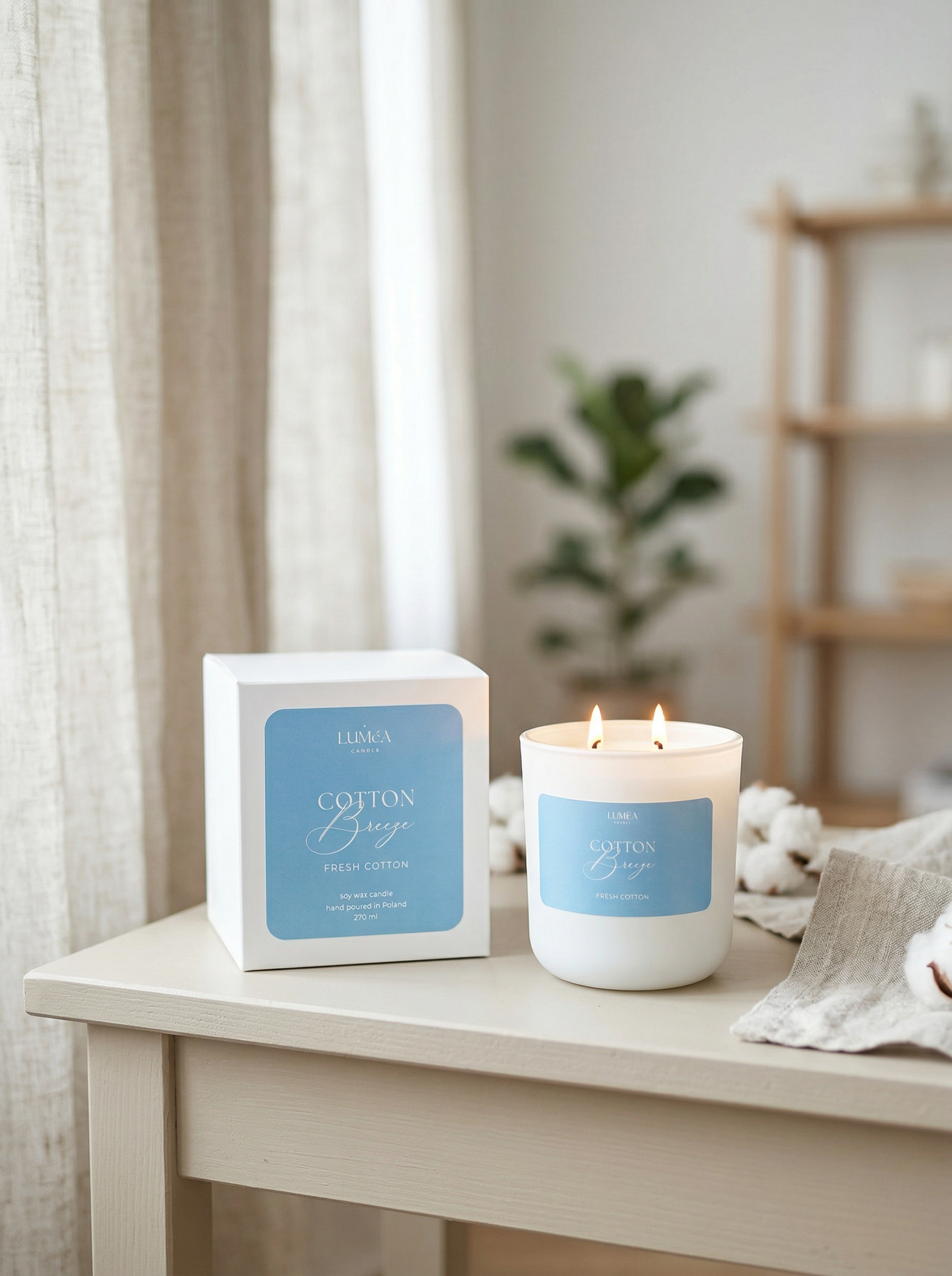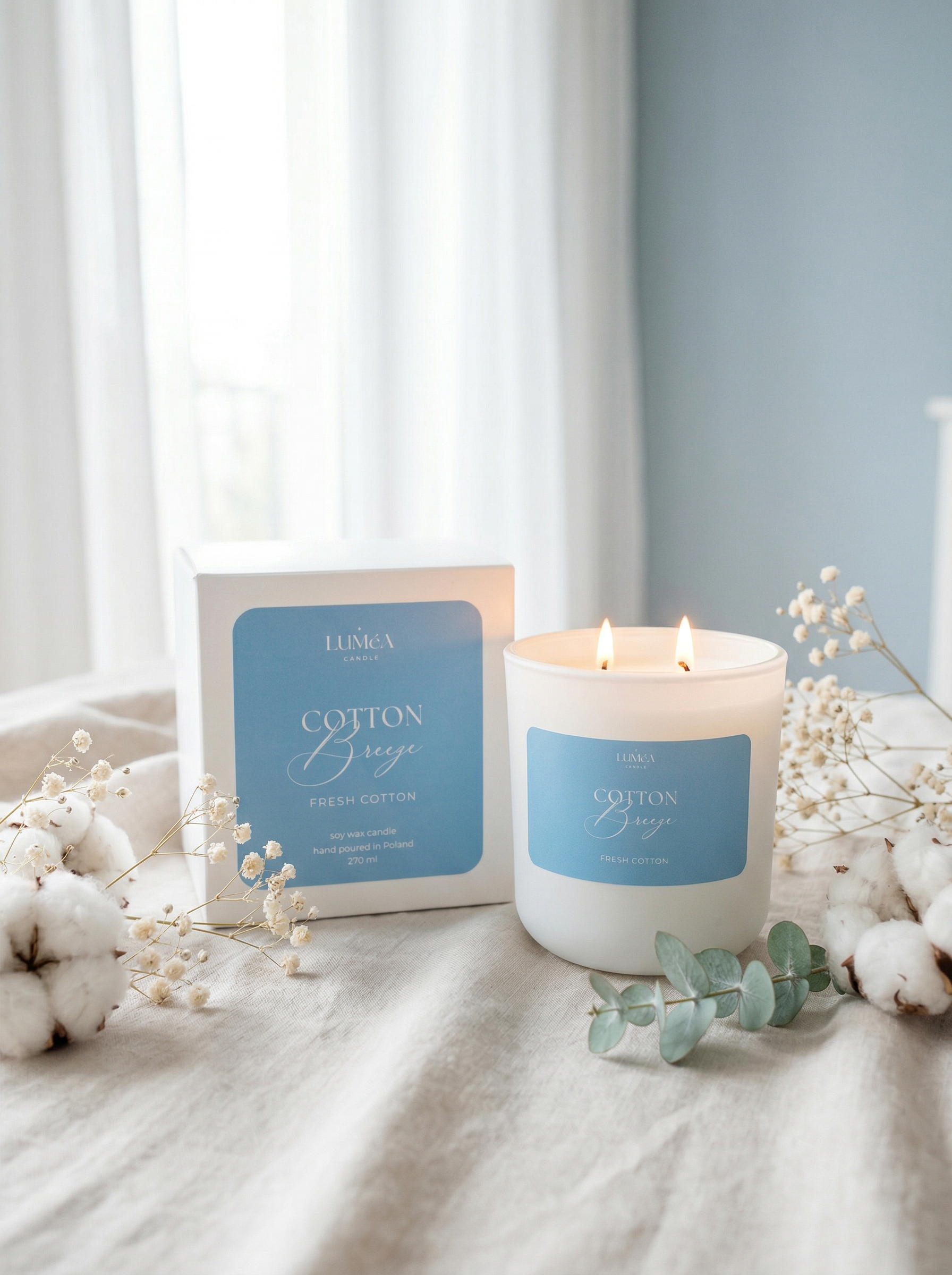 Cotton Breeze - sojowa świeca Luméa Candle o aromacie świeżej bawełny