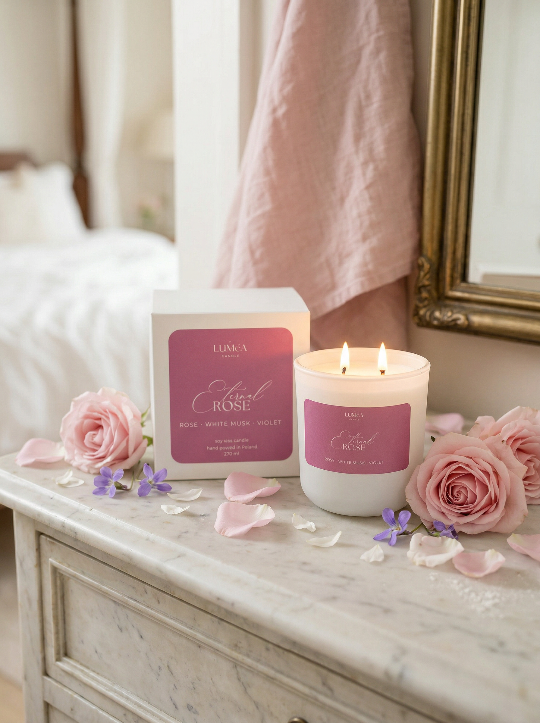 Eternal Rose– sojowa świeca Luméa Candle o aromacie róży, białego piżma i fiołków