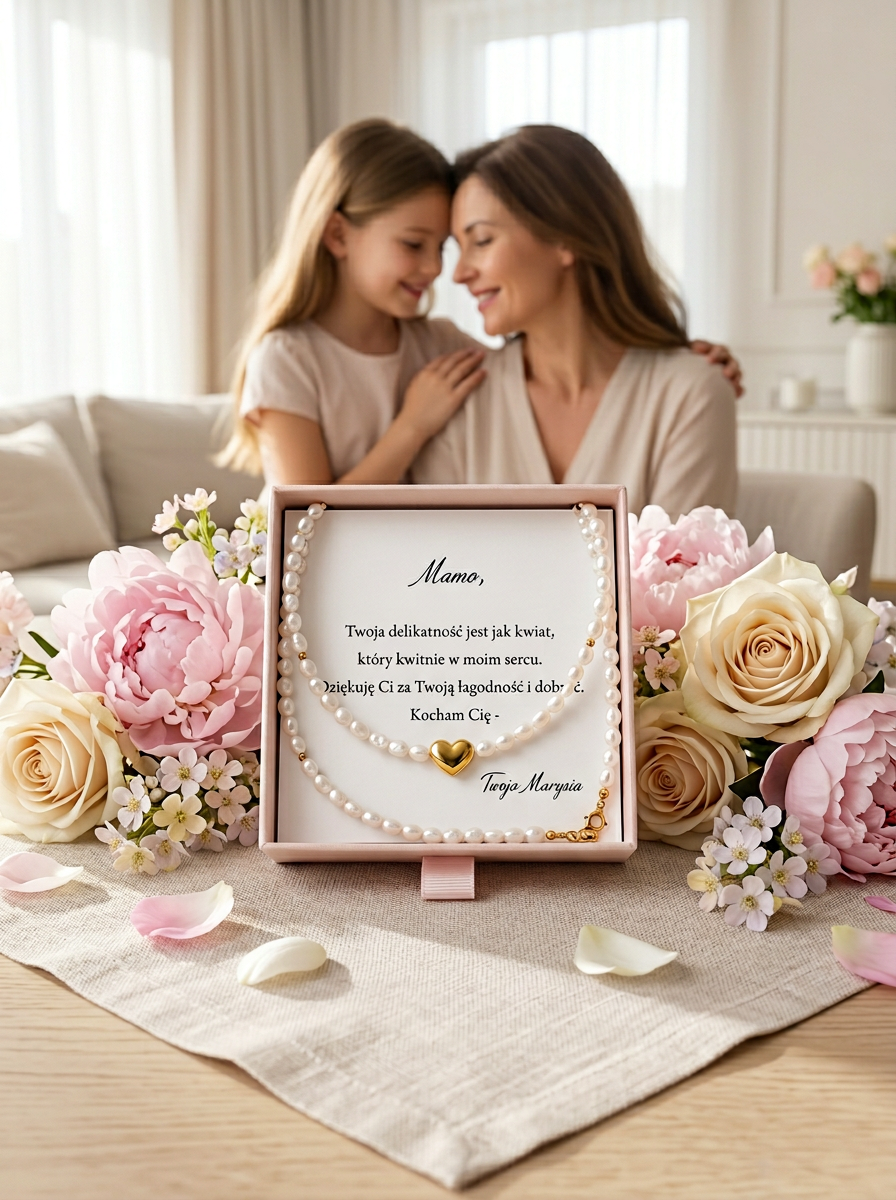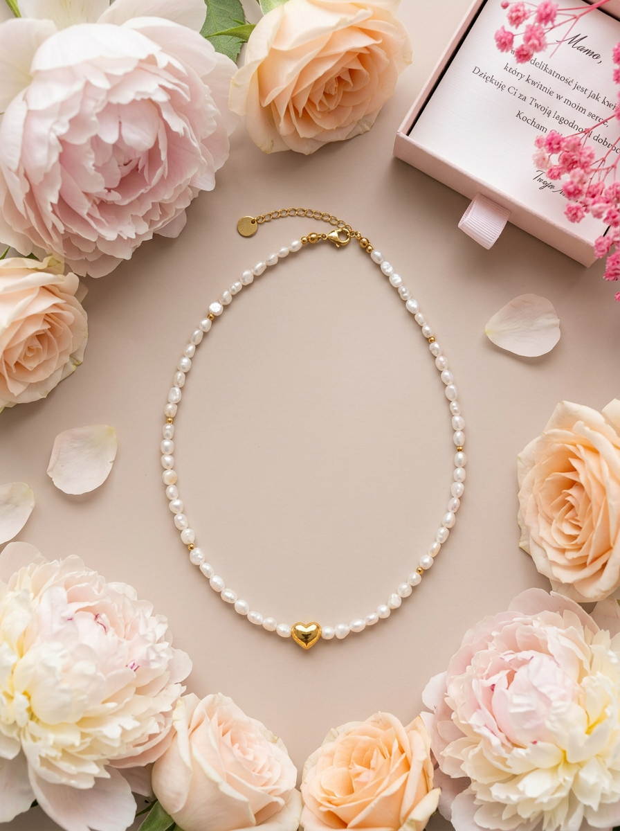 Każda perła jest unikalna, ich miękki połysk i lekko nieregularny kształt nadają naszyjnikowi charakteru i naturalnego uroku. Złote serduszko dodaje biżuterii lekkości i sentymentalnej nuty.