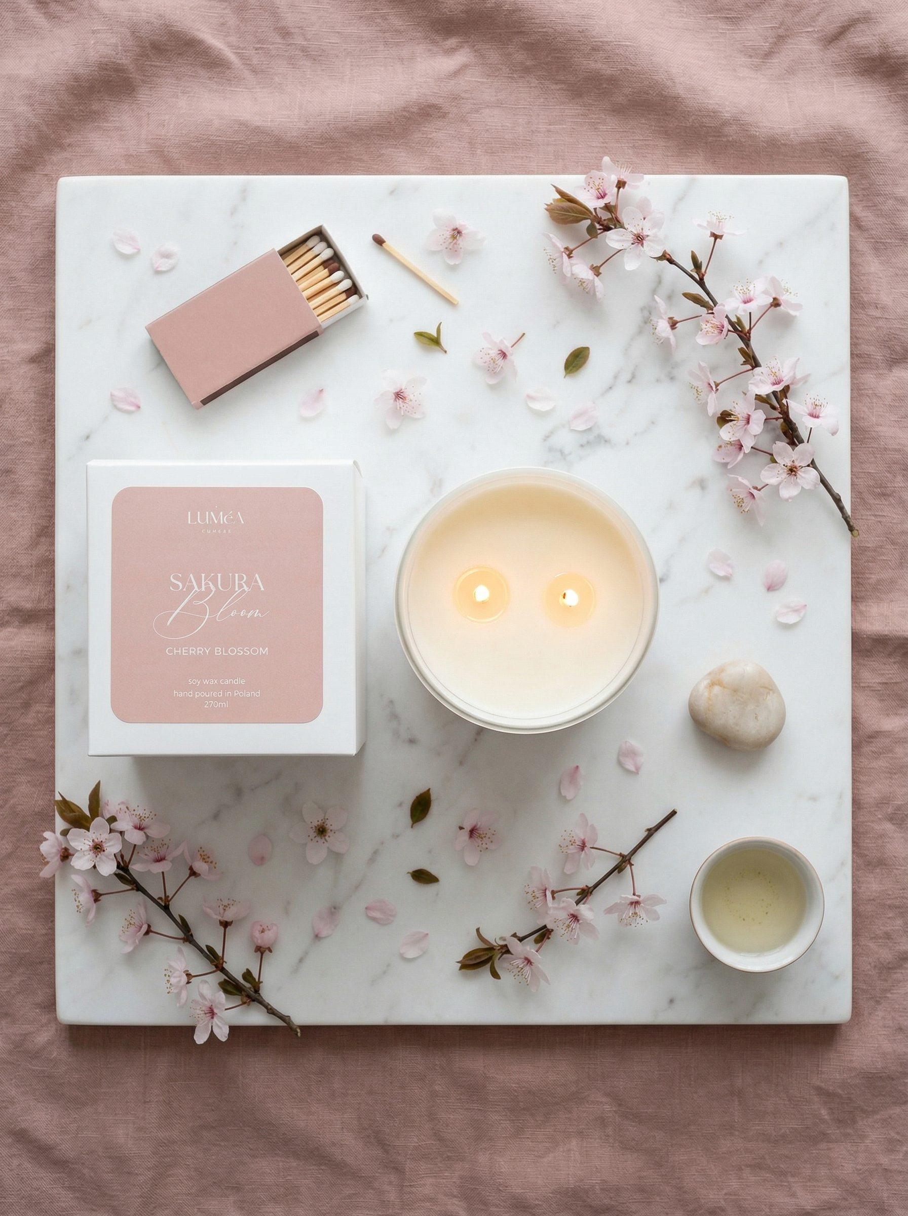 Ręcznie tworzona w Polsce, świeca Sakura Bloom, łączy naturalny wosk sojowy, minimalistyczny design tworząc wyjątkowy, kojący rytuał pełen miłości i ciepła.