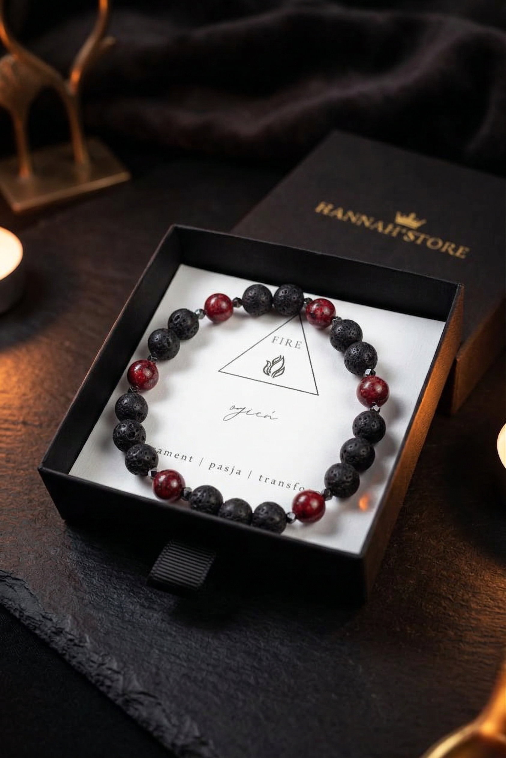 Bransoletka Żywiołu Ogień to symbol prawdy, pasji i siły życiowej. Zaprojektowana z myślą o mężczyznach, którzy żyją intensywnie, podążają za sercem i nie boją się wyzwań. Ogień to żywioł szczerości i determinacji – wspiera w pokonywaniu przeszkód, dodaje energii i pomaga pielęgnować wiarę w siebie.