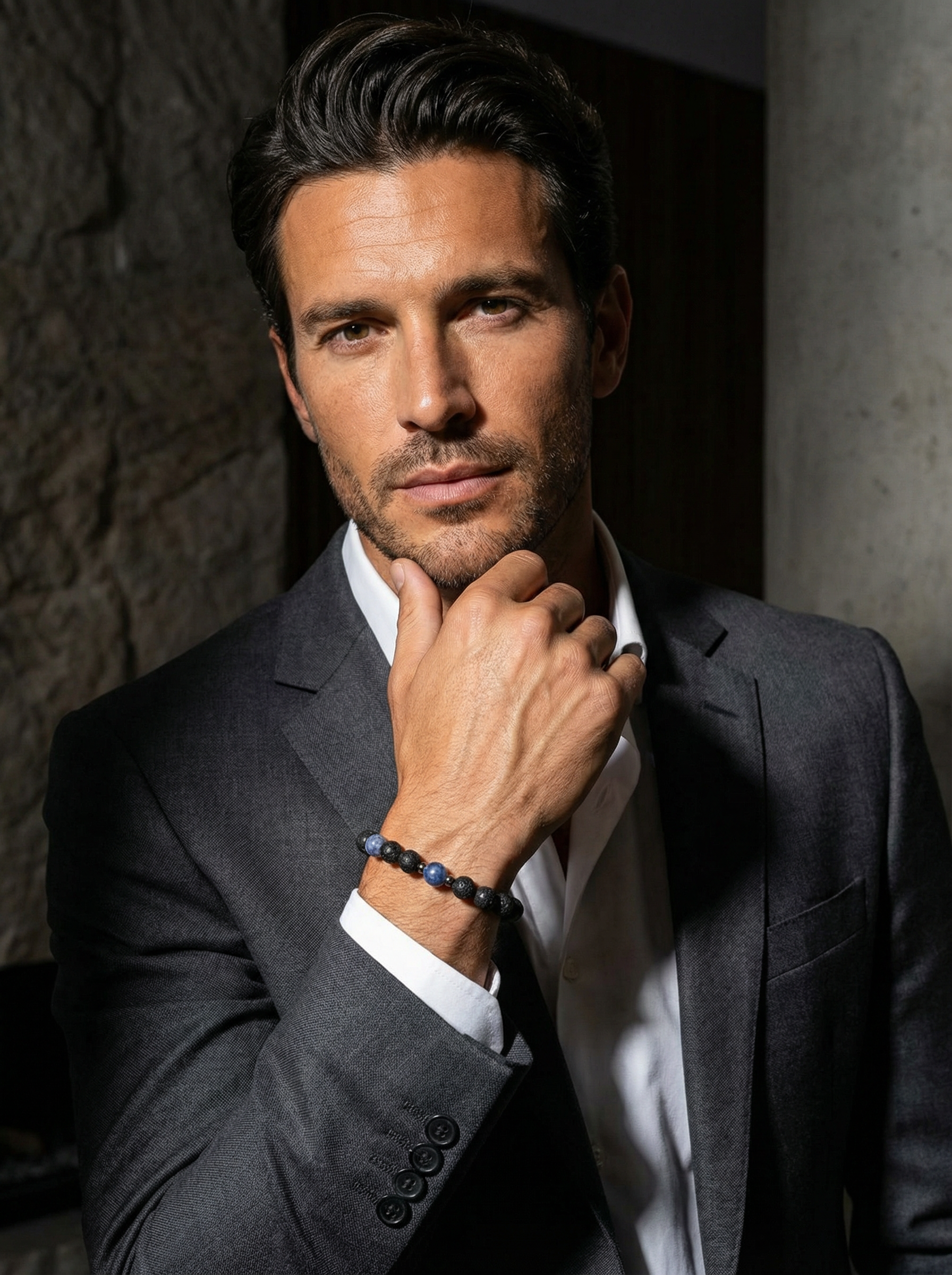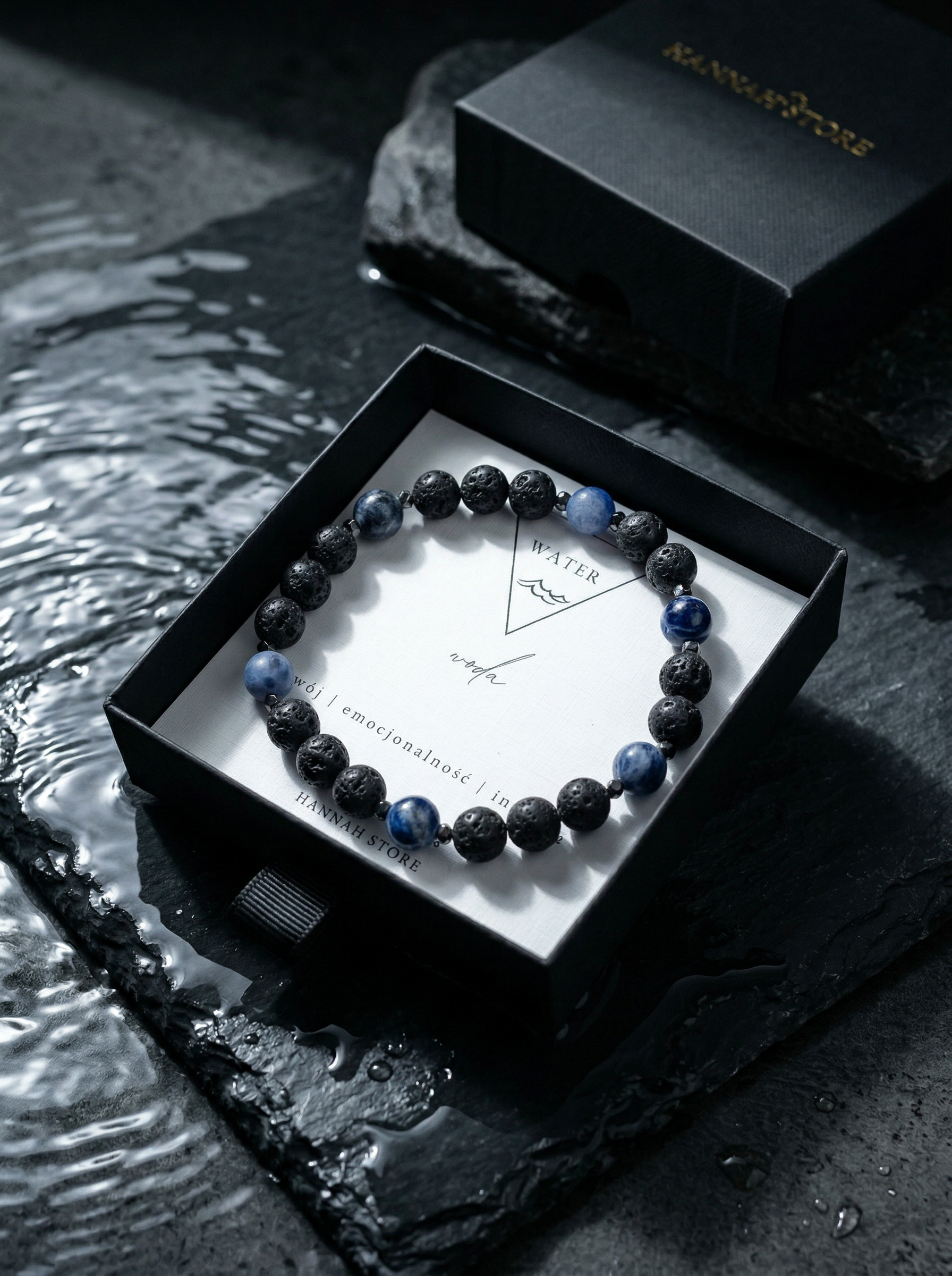 ŻYWIOŁ WODA – bransoletka męska z sodalitem i lawą wulkaniczną